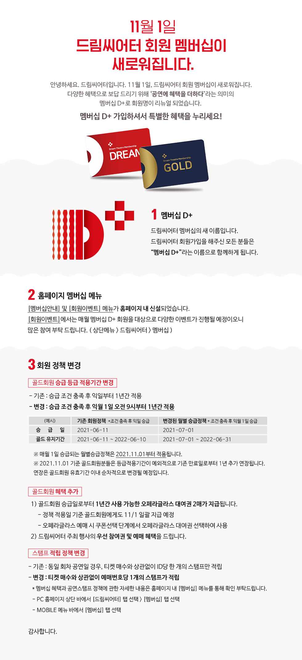 드림씨어터 회원 멤버십 리뉴얼 안내