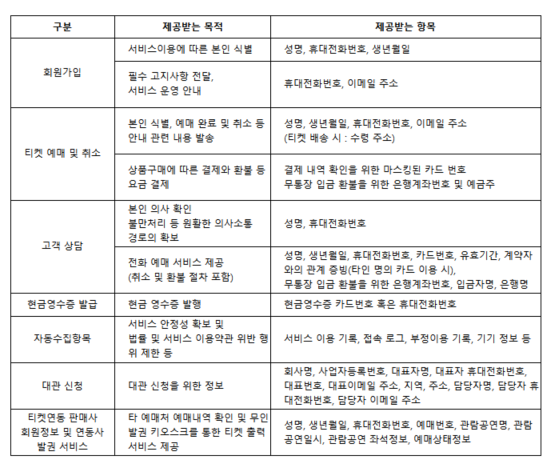 회사는 회원가입, 예매, 고객 상담, 이벤트 참여 등 서비스 이용 과정에서 이용자가 직접 입력한 정보를 수집하며, 서비스 이용 과정에서 자동으로 생성되는 정보(IP 주소, 접속 기록 등)를 수집할 수 있습니다.